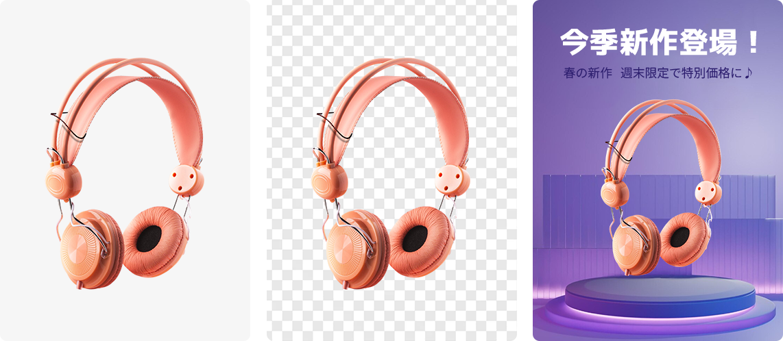 画像認識AIを使い、被写体を自動で識別し、その背景を瞬時に切り抜いて100%削除してくれます。