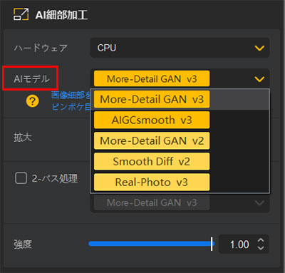 今回は、ピンボケ補正とディテール強化機能が特徴の、「More Detail GAN v3」を選択しました。