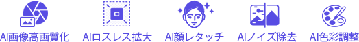 - 🟊 業界随一のAI高画質化機能搭載、ディテールを損なわずに画像の解像度を上げる;