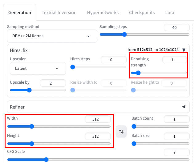 - 「Hires.fix」にチェックを入れます。
