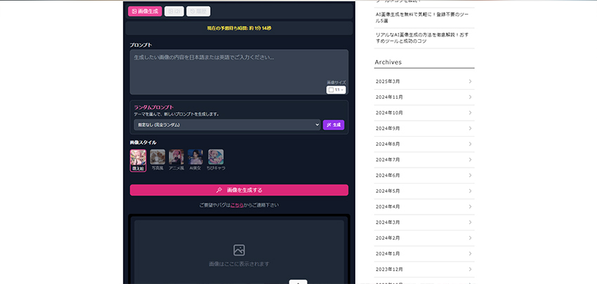 - 毎日も一定回数まで立ち絵を無料生成できます。