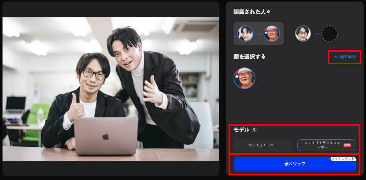 - PCで顔を入れ替える時に、パソコンスペック不足でAIがうまく動作できないことがよくあります。特に写真や動画などの画像を処理する時に強力的なGPUが要求されています。なので、パソコンではなくサーバーで顔入れ替え作業を完成するオンラインツールが多くあります。